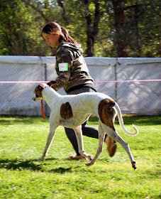 Emlek is a relative to Gil, Pi, Patti and Pesh (she is Gil's niece and first cousin to the Operetta puppies), so when I found out that she started coursing I was thrilled! Coursing in Hungary is very strictly regulated by the Hungarian government, but is allowed for Magyar Agars exclusively because they are considered a national treasure. These coursing tests are overseen by the Magyar Agár Tenyésztők Országos Egyesülete (MATOE), which is an independent registry not affiliated with the FCI. In order to be granted permission to course, each dog must be registered with the MATOE. Unlike FCI registration, each dog must go through an individual evaluation process to determine whether they meet certain conformational criteria as set forth by the MATOE. One of the stricter requirements is that the dog be solid colored with full pigmentation on the toenails. Apparently the wisdom is that dogs lacking sufficient pigment are more likely to sustain foot injuries due to the more brittle nature of their toenails. As such, poor Gil and Pi would not be allowed to course in Hungary, but thankfully they can enjoy that privilege here in America.